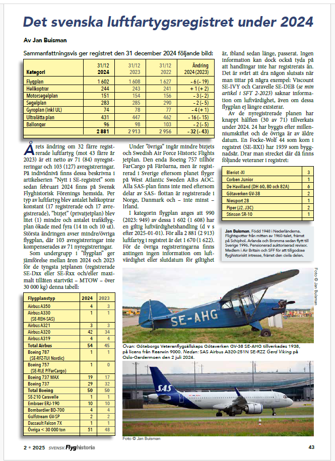 Särtryck ur Svensk Flyghistoria nr 2-2025. Text och foto Jan Buisman