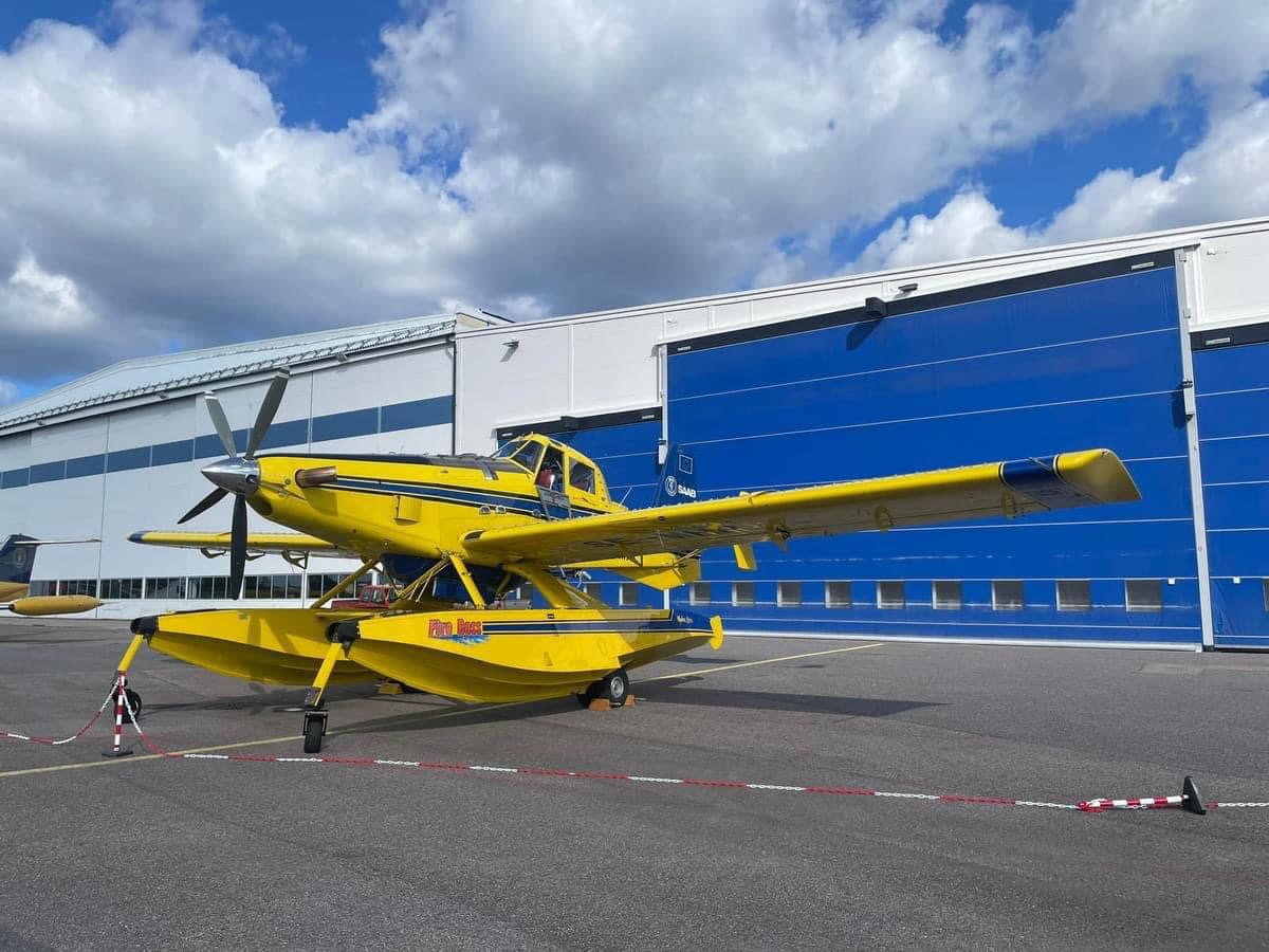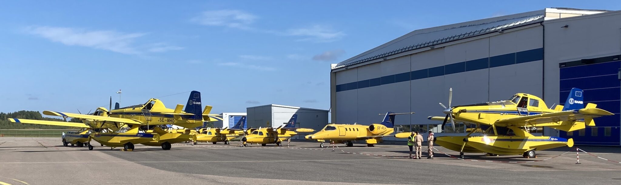 Hela Saabs gula flygplansflotta utrullad för visning på Platta 4! Och till flygshowen fick publiken se Air Tractor in action! 3 ton vatten släpptes på några få sekunder! En mäktig maskin med mäktiga prestanda!